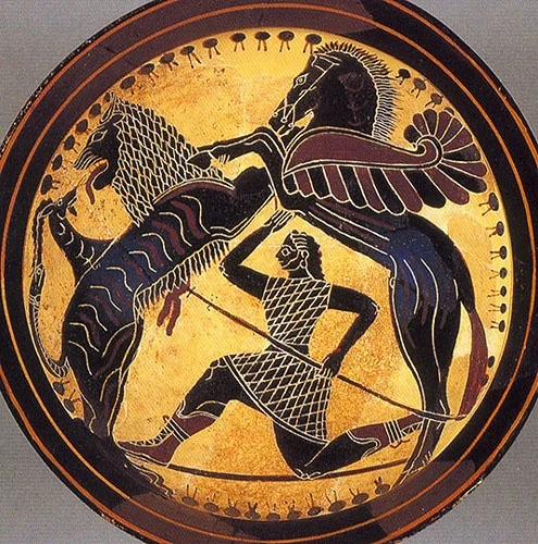 Bellerophon (Βελλεροφων) or Bellerophontês (Βελλεροφοντης) was a hero. He slayed the Khimaira with the help of Athena and Pegasus.