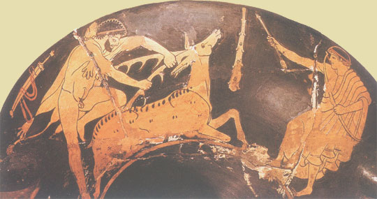 Herakles' third labor was to capture the elusive Kerynitis Hind. Hera was greatly angered to find that Heracles had managed to escape from the claws of the Nemean Lion and the fangs of the Lernaean Hydra, and so decided to spend more time thinking up a third task that would spell doom for the hero. The third task did not involve killing a beast, as it had already been established that Heracles could overcome even the most fearsome opponents, so Eurystheus decided to make him capture the Keryneian Hind, as it was so fast it could outrun an arrow.