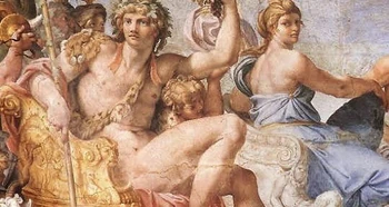 Very little is known about the background of the Orphic Dionysus aside from the fact that he was regarded as the child of Zeus and Persephone. Stories from the Orphic Hymns has the Titans, who were opposed to Zeus' power, Titans snuck into Olympos, take the child to the woods and beguile him with toys, then dismembered him and consumed the child except for his heart. Zeus recovered the child's heart and making it into a potion, fed it to one of his many lovers: Semele. From the drink she conceived the younger Dionysos, as a reincarnation of the first.